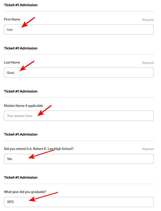 5. Fill out your information for ticket #1.