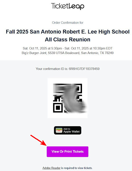 9. From here, you can print your ticket to take to the reunion for expedited check-in.