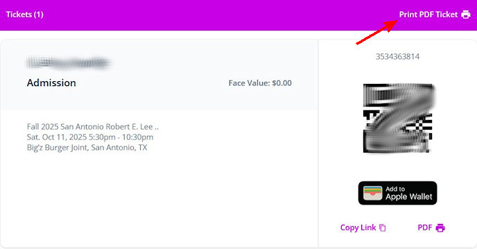 9. From here, you can print your ticket to take to the reunion for expedited check-in.